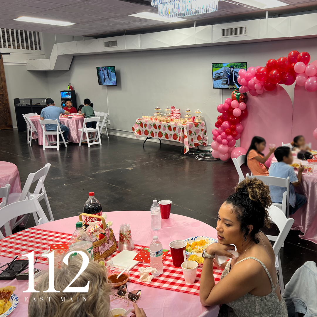 Step into the magic of 112 East Main, where every celebration becomes a cherished memory. Nestled in the heart of charming, historic downtown Grand Prairie, our affordable banquet hall is the quintessential venue for your small to midsize quinceañeras and birthday celebrations, tailored for up to 60 guests.